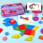 پازل اشکال چوبی وارداتی قوطی بنفش